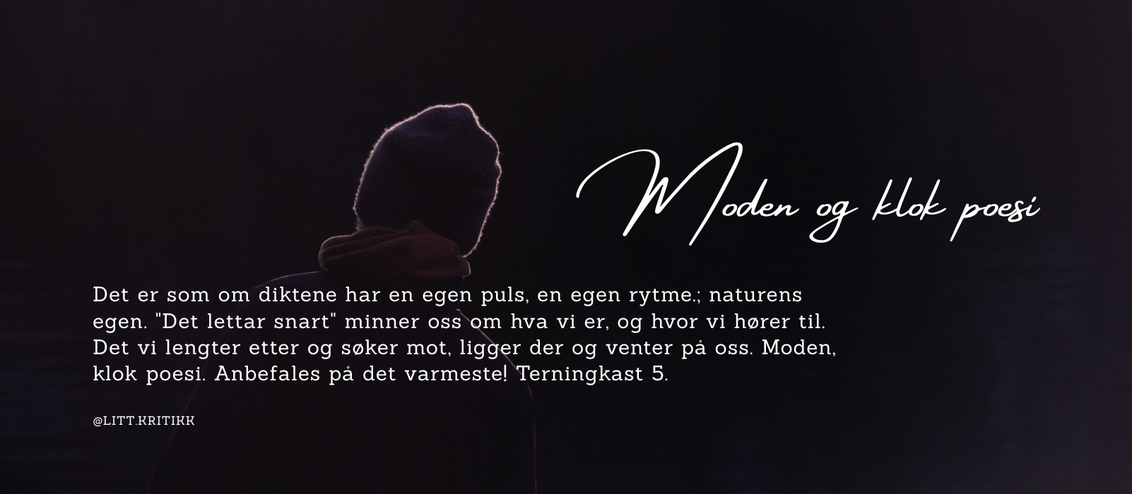 TERNINGKAST FEM! Denne boka handlar om å vera menneske i alt som er no, og inviterer lesaren med heimover og inn i skogstilla, og utover mot havet, der ein kan høyra lyden av vind og bølgjer og kjenna krafta i nordvesten.